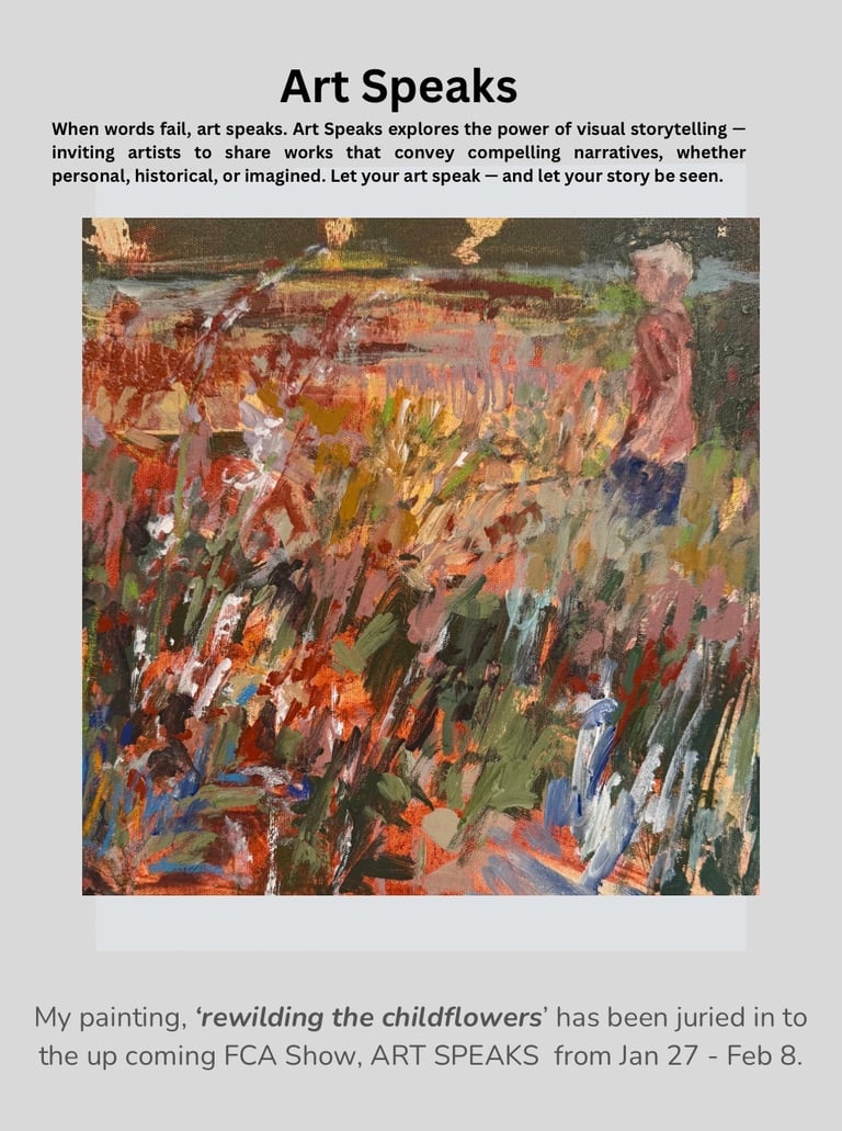 Two of our members, Diane Akey and Patricia L Smith are thrilled to announce a series of upcoming exhibitions throughout the Okanagan and Kootenay regions in 2026 based on their collaborative plein aire experiences and consequential studio works. They will begin exhibiting at the Armstrong/Spallumcheen Gallery in June, Nakusp's Studio Connexion Gallery in July, Salmon Arm's Atelier Gallery in August and Vernon's Vertigo Gallery in October. Patti also has work in the Vancouver FCA Gallery EME exhibition in January and will be the Feature Artist in Enderby's Courtyard Galley in August. Diane will be exhibiting in the Vancouver FCA Gallery Art Speaks in January/February. We are individually working on images for the summer members' exhibition at the Salmon Arm Art Gallery The Tangled Garden.